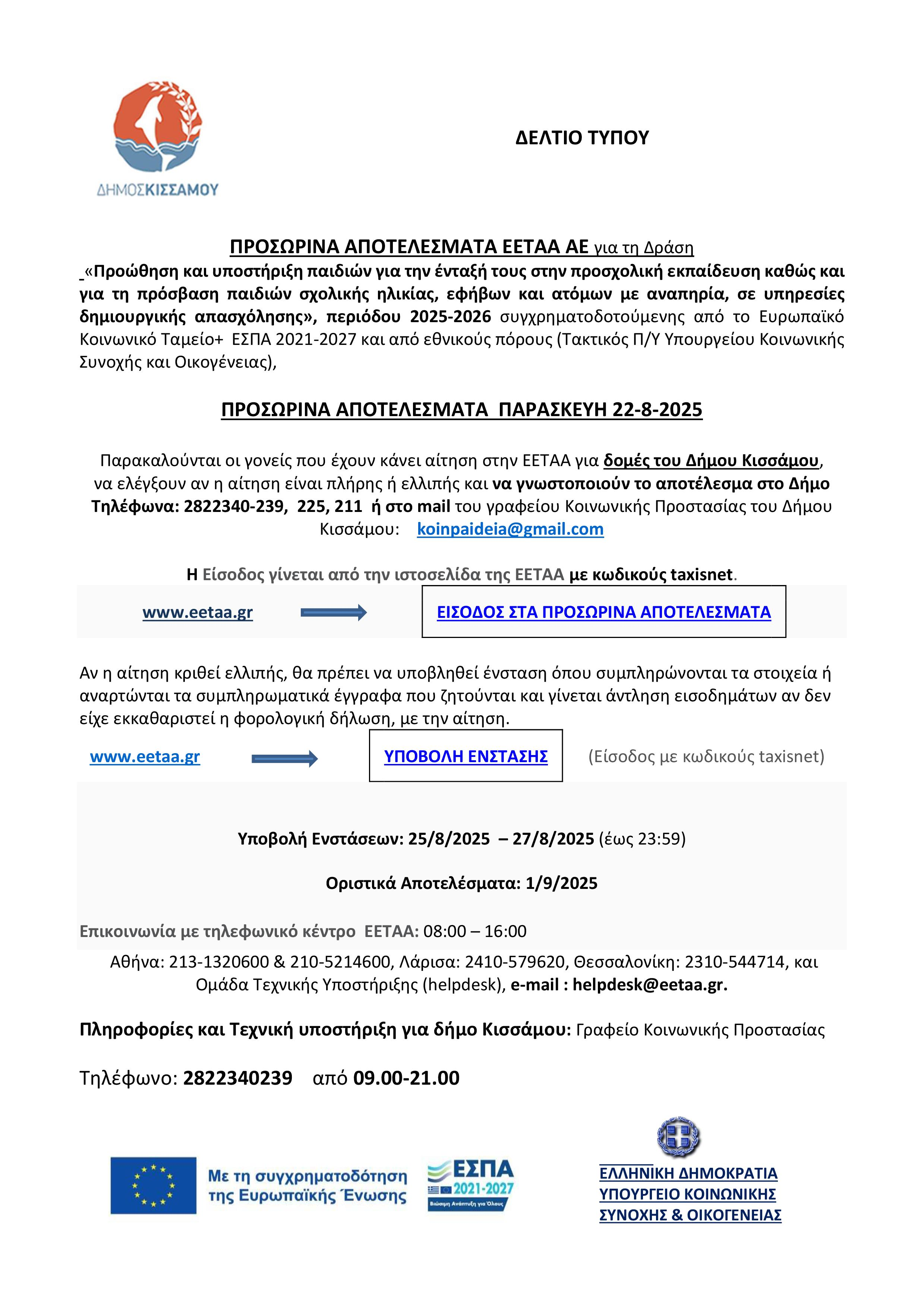 ΕΛΛΗΝΙΚΗ ΔΗΜΟΚΡΑΤΙΑ Κίσσαμος, 21 -8-2025